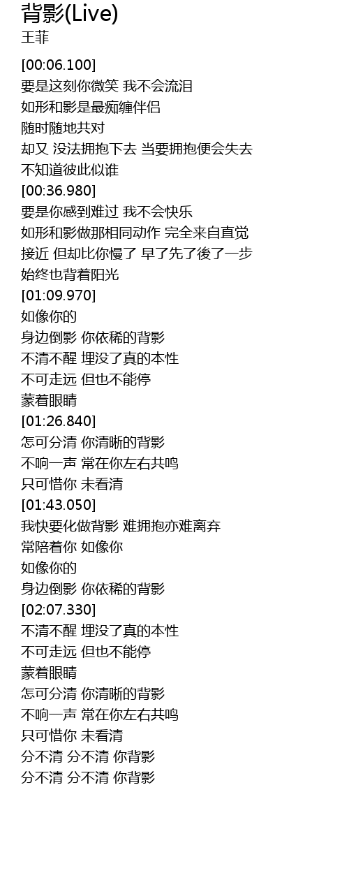 | [01:45.030] | 我快要化做背影 难拥抱亦难离弃 |