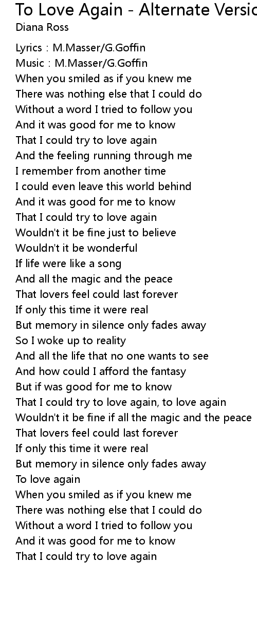 | That I could try to love again, to love again | |