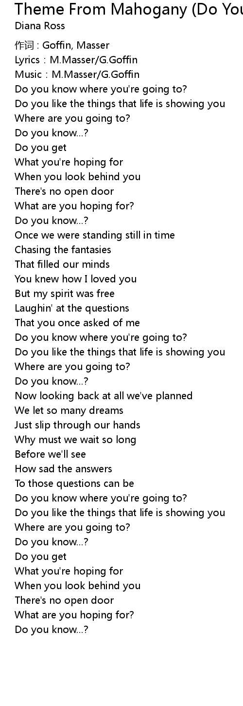 | Song | Theme From Mahogany (Do You Know Where You're Going To) - Alternate Version #2 |