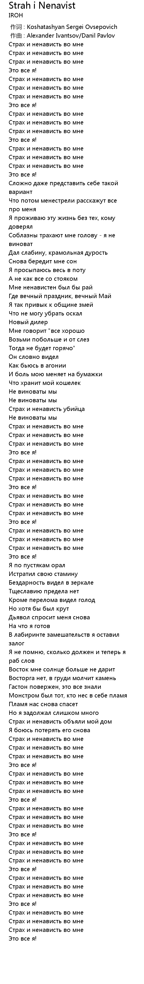 Страх и ненависть во мне |