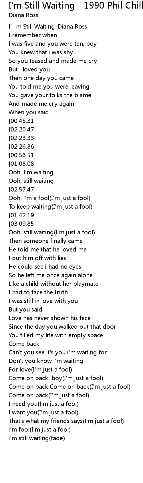 | [03:12.36][03:09.85][03:01.24][01:35.07] | I' m waiting I' m just a fool |