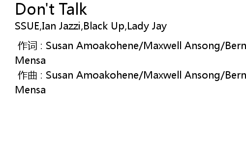 | [00:00.000] | 作曲 : Susan Amoakohene/Maxwell Ansong/Bernard Femi-Kayede/Nancy Mensa |
