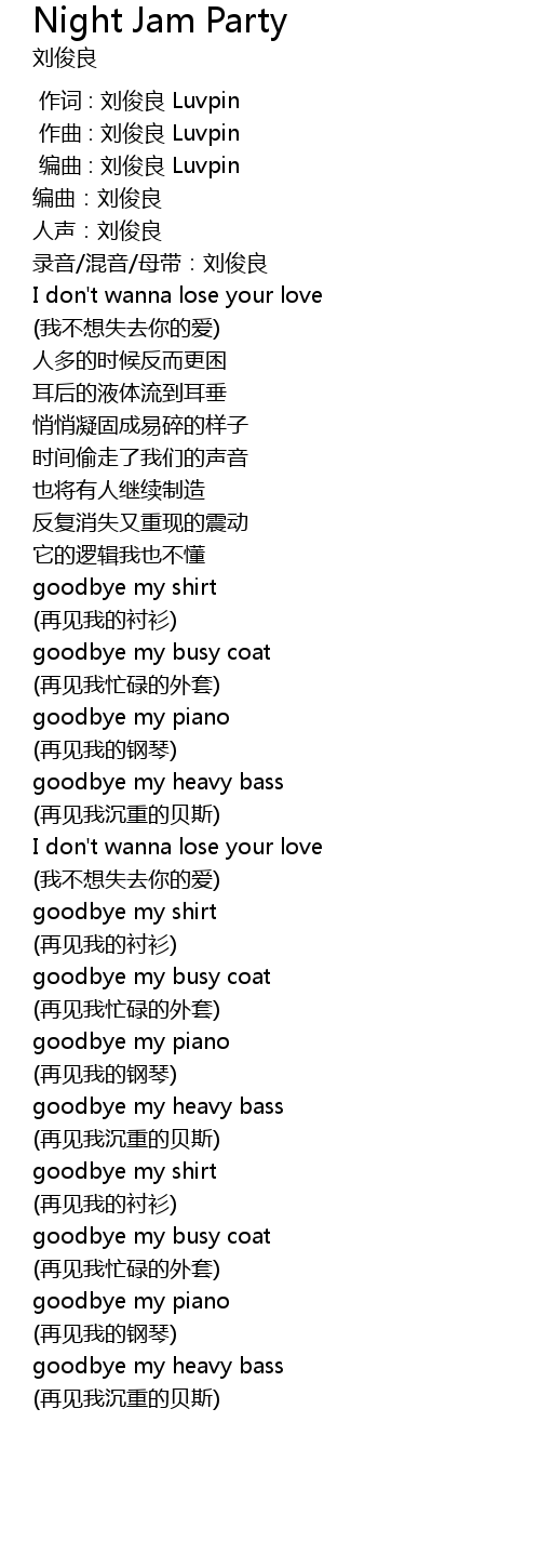 | [00:00.000] | 作词 : 刘俊良 Luvpin |