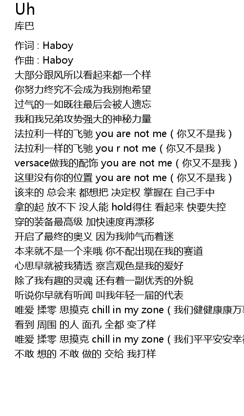 | fa la li yi yang de fei chi you are not me ni you bu shi wo | |