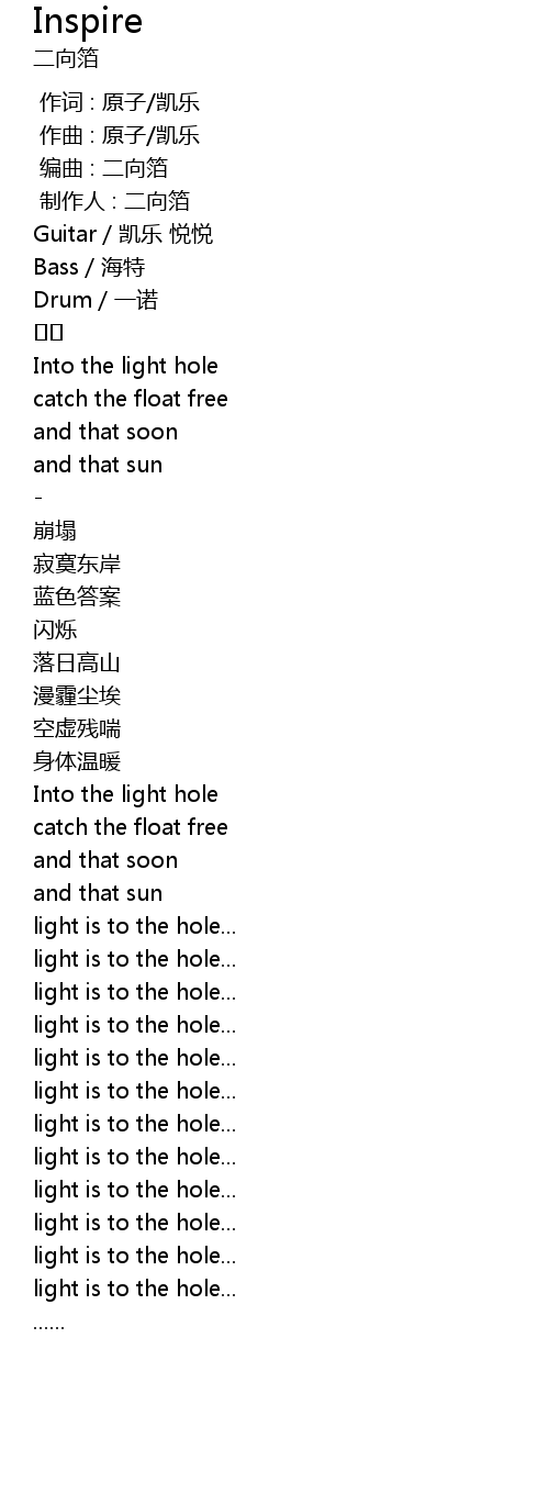 | [02:27.571] | Into the light hole |