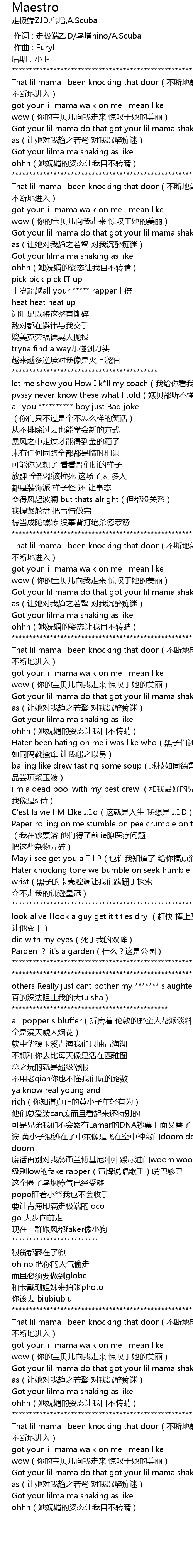 | [02:35.447] | others Really just cant bother my ******* slaughter(其他人 真的没法阻止我的大tu sha) |