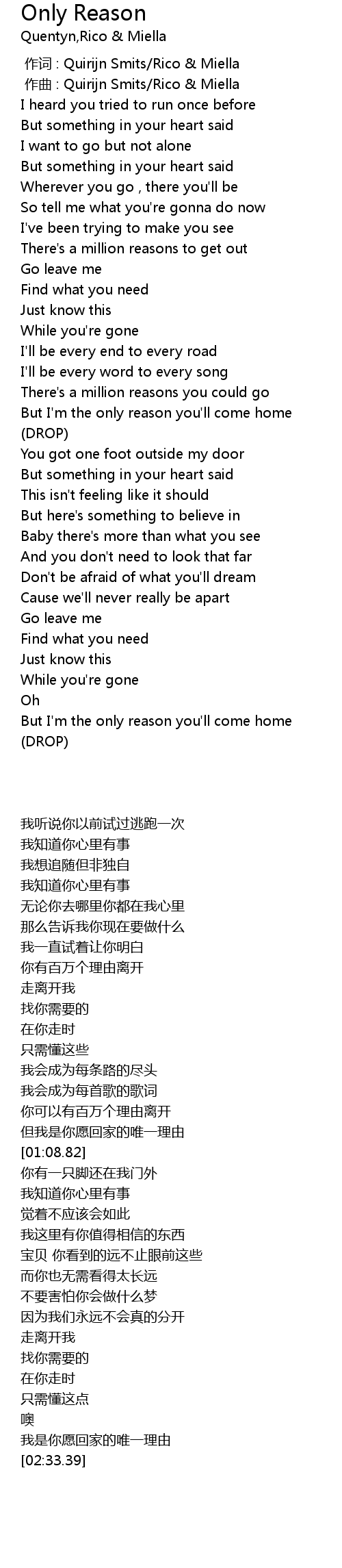| [02:31.29] | But I' m the only reason you' ll come home |