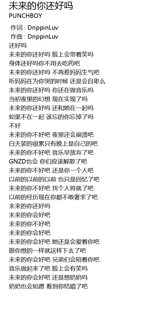 | [01:32.323] | wei lai de ni hui hao ba hai shi xiang nai nai ma |