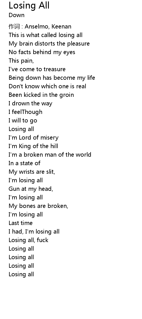 | I had, I' m losing all | |
