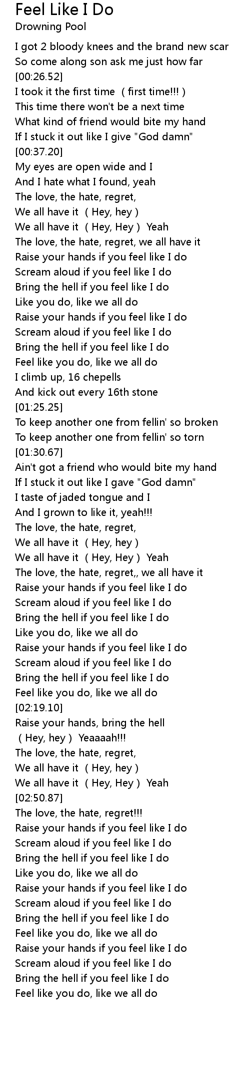 | [00:21.41] | I got 2 bloody knees and the brand new scar |