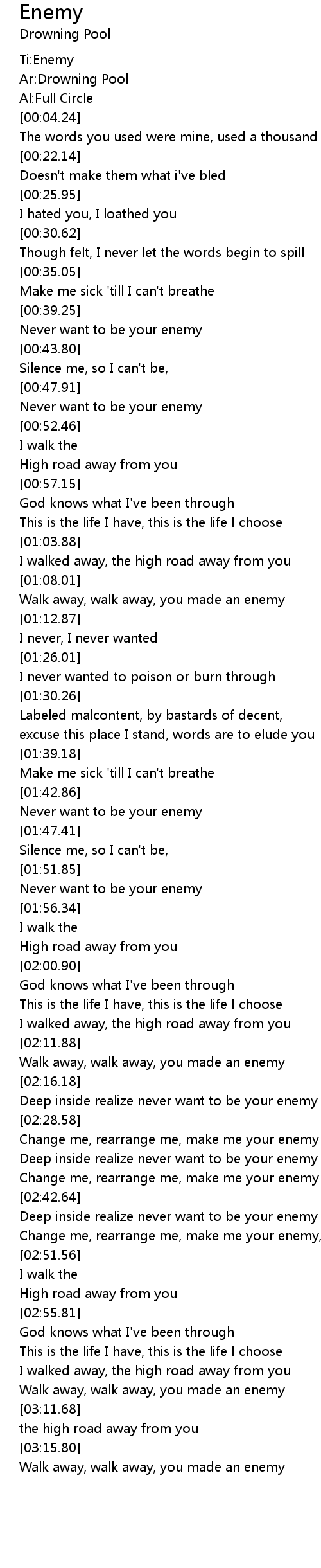 | [02:46.51] | Change me, rearrange me, make me your enemy, your enemy |