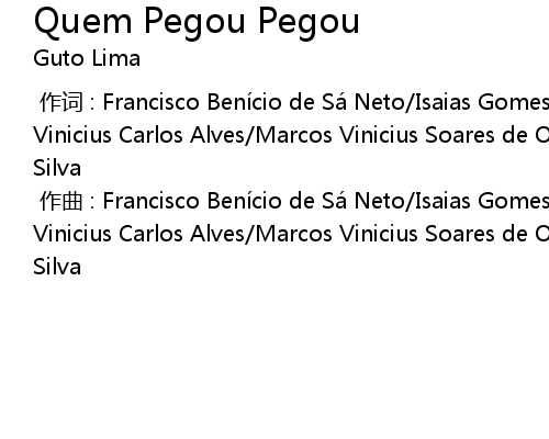 | [00:00.000] | 作词 : Francisco Benício de Sá Neto/Isaias Gomes Da Silva/Marcos Vinicius Carlos Alves/Marcos Vinicius Soares de Oliveira/Renno Saraiva Macedo e Silva |