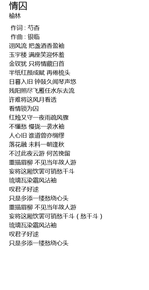 | [01:09.413] | 看情锁为囚 |