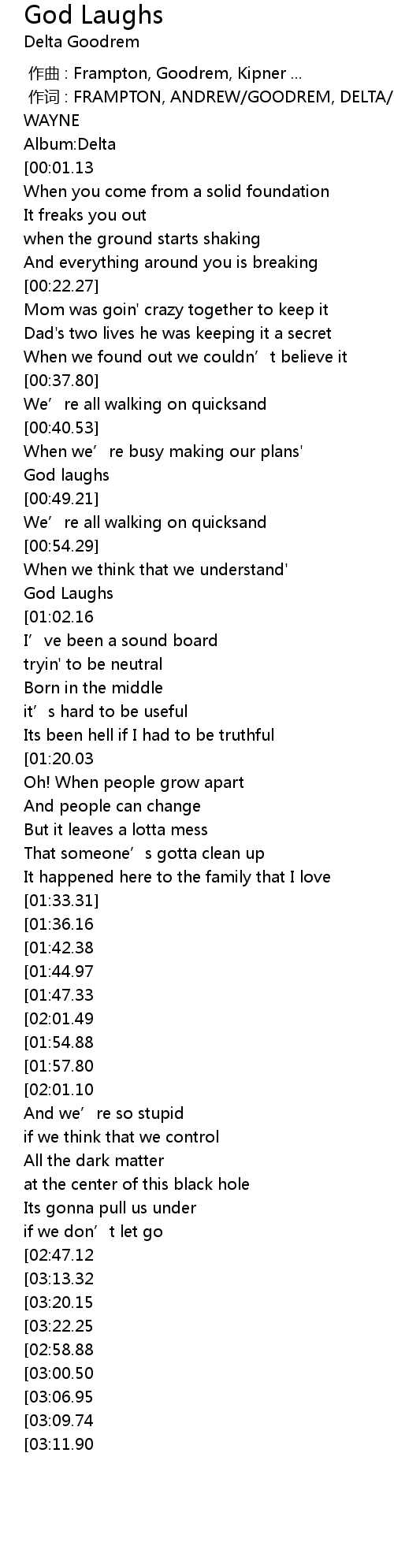 | [02:23.63][01:57.80] | God Laughs |