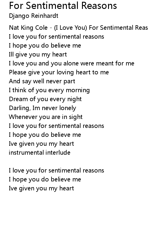 I love you for sentimental reasons |