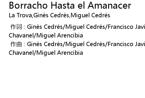 | [00:00.000] | zuò cí : Giné s Cedré s Miguel Cedré s Francisco Javier Chavanel Miguel Arencibia |