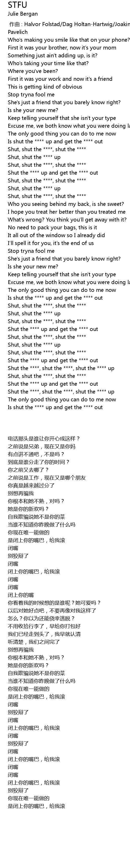 | [01:53.93] | Shut the ****, shut the ****, shut the **** up |
