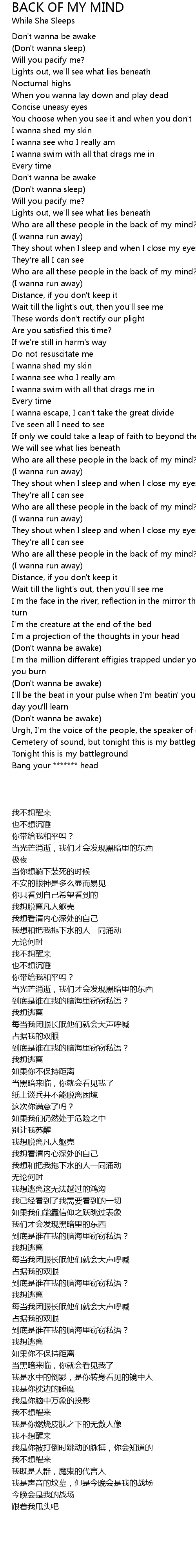 BACK OF MY MIND Lyrics