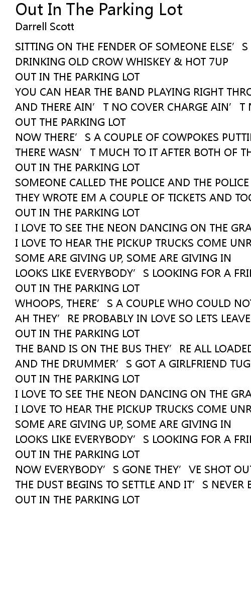 | I LOVE TO SEE THE NEON DANCING ON THE GRAVEL | |
