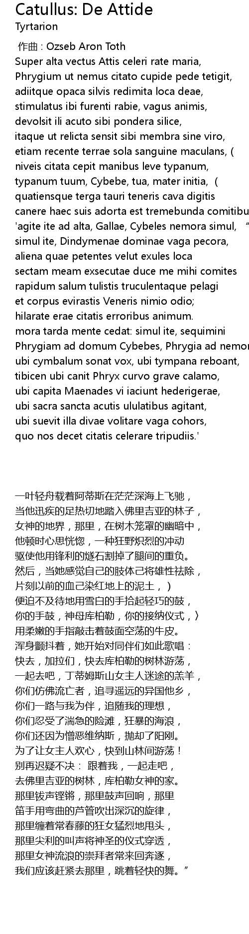 | [00:59.233] | 'agite ite ad alta, Gallae, Cybeles nemora simul, “ |