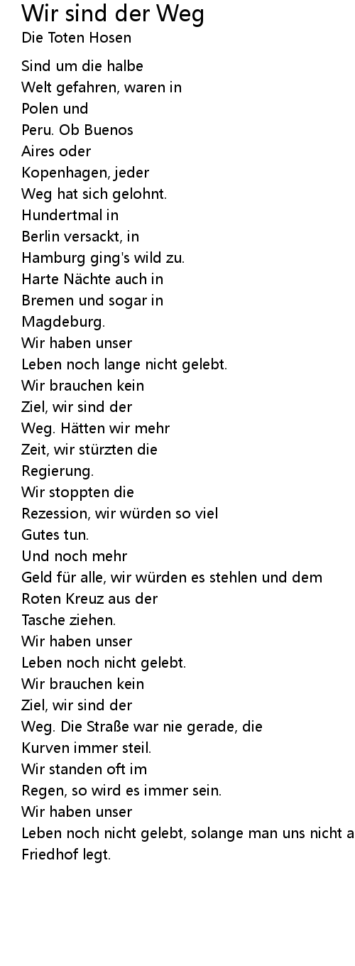 | Leben noch nicht gelebt, solange man uns nicht auf den | |