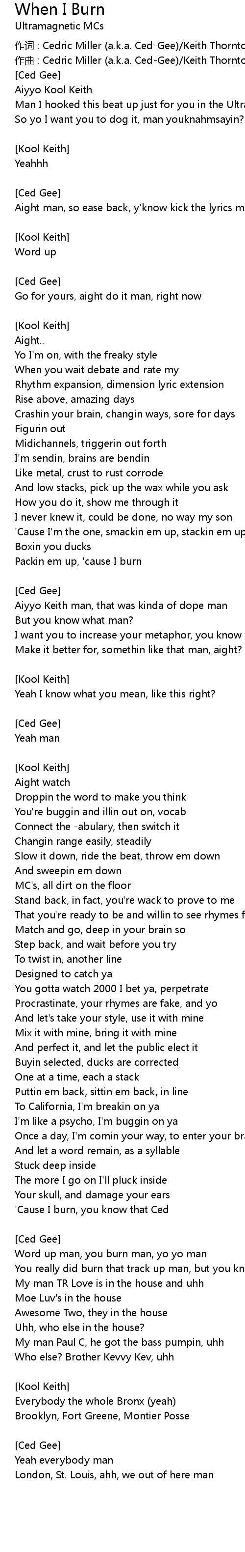 | 作词 : Cedric Miller (a.k.a. Ced-Gee)/Keith Thornton (a.k.a. Kool Keith) | |