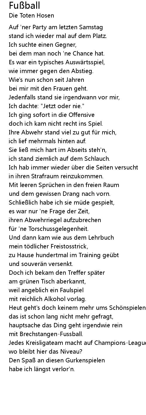 | Heut geht's doch keinem mehr ums Schönspielen, | |
