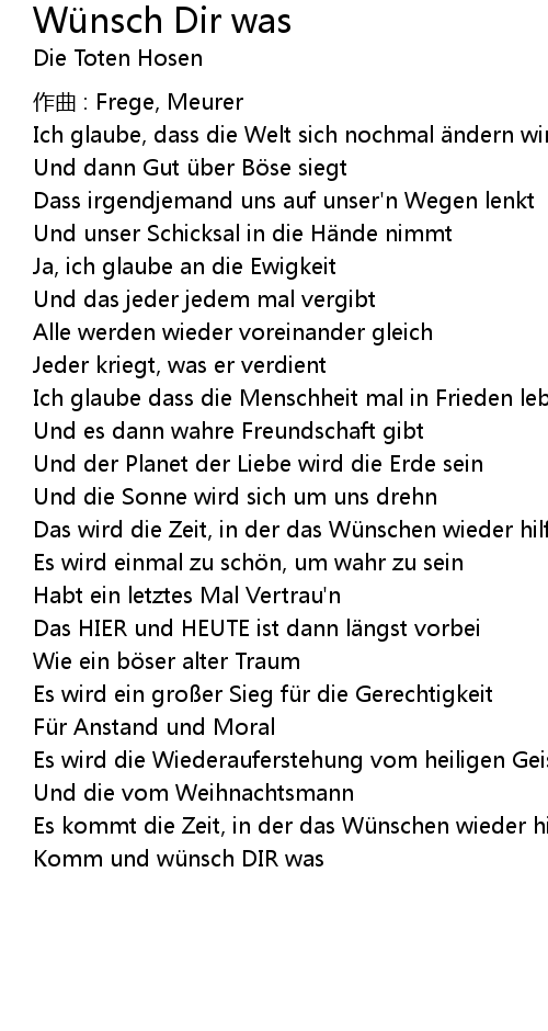 | Song | Wünsch Dir was |