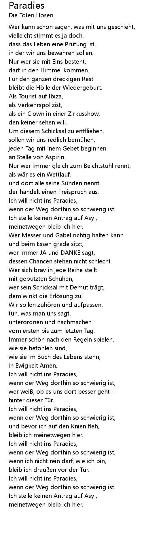 | Ich will nicht ins Paradies, | |