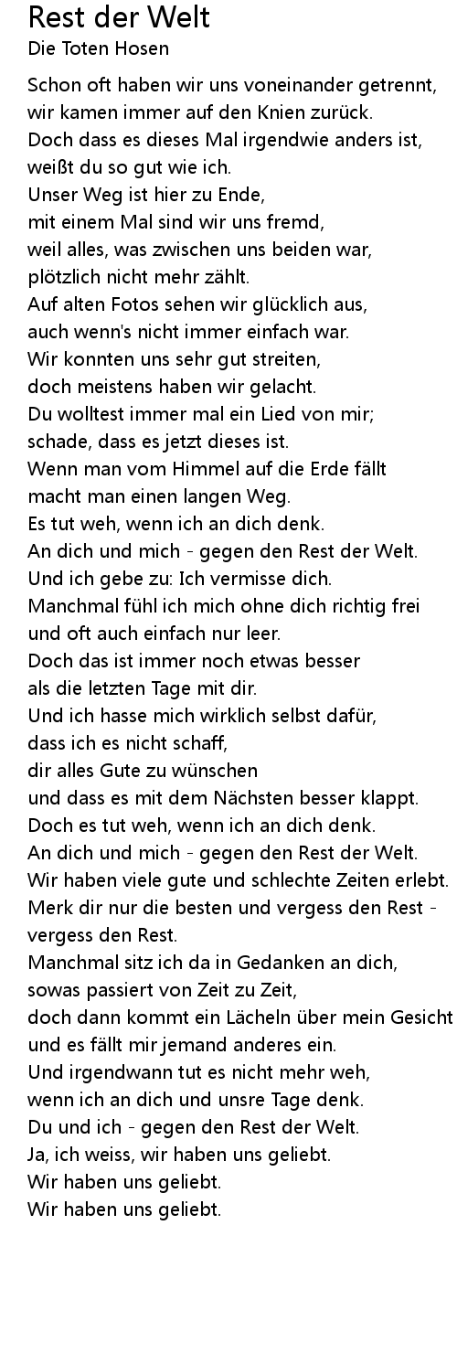 | Ja, ich weiss, wir haben uns geliebt. | |