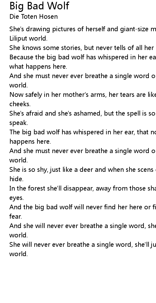The big bad wolf has whispered in her ear, that no one else must know what happens here. |