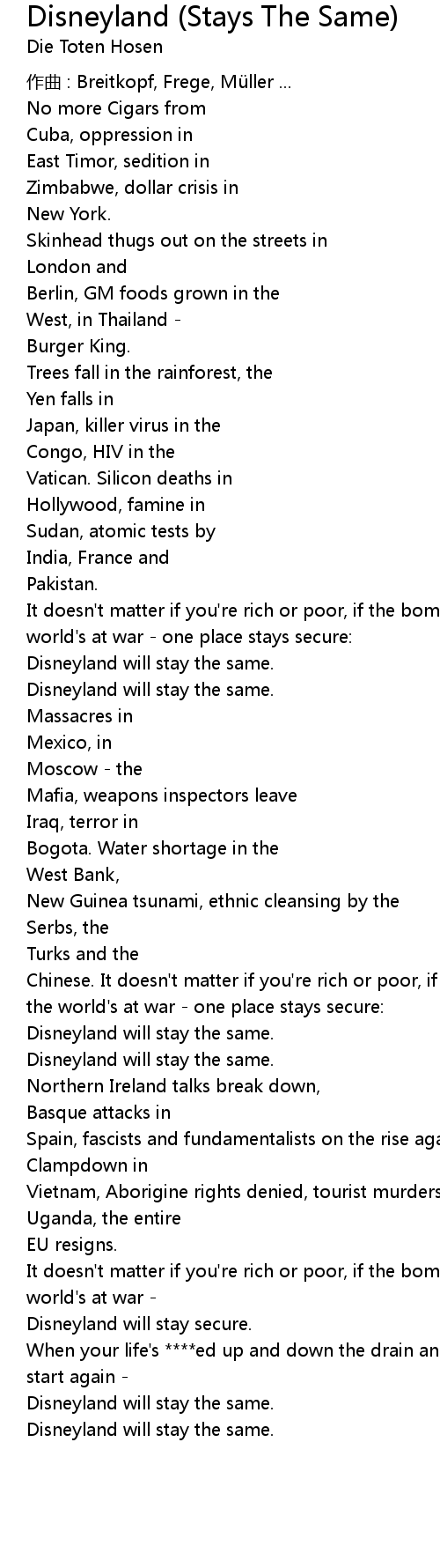| It doesn' t matter if you' re rich or poor, if the bombs are dropping and the world' s at war | |