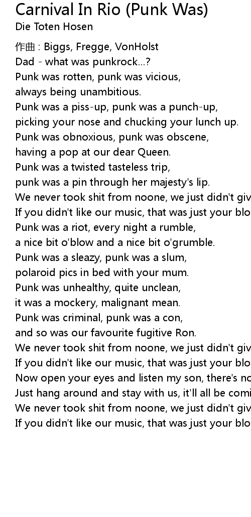 | Song | Carnival In Rio (Punk Was) |