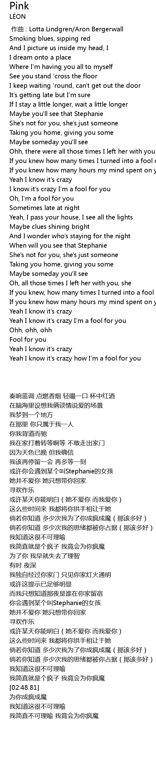| [02:39.33] | Yeah I know it's crazy I'm a fool for you |