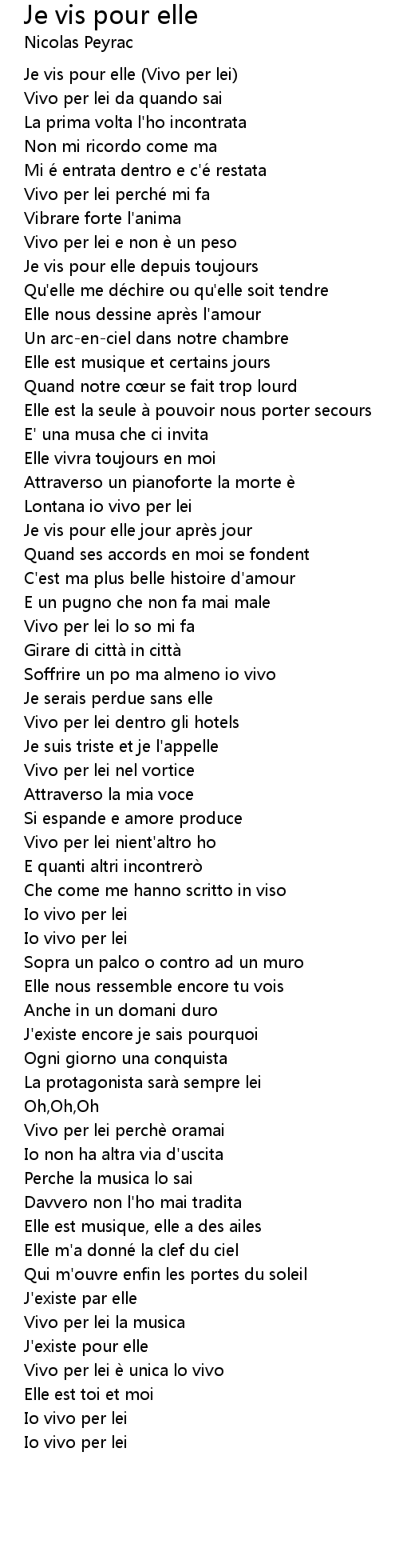 | [00:01.52] | Je vis pour elle Vivo per lei |