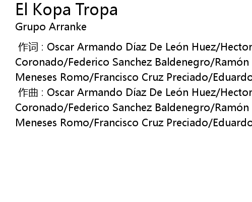 | [00:00.000] | 作词 : Oscar Armando Díaz De León Huez/Hector Franco Coronado/Federico Sanchez Baldenegro/Ramón Alan Mendivil Rivera/Gilberto Meneses Romo/Francisco Cruz Preciado/Eduardo Silva Herrera |
