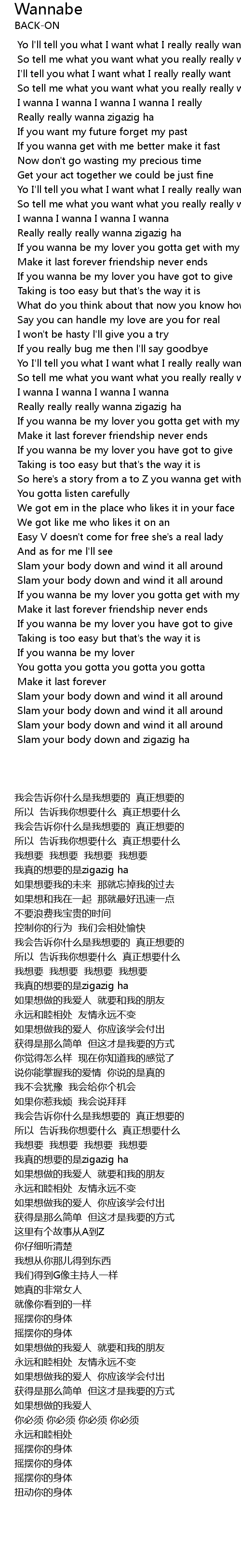 I wanna I wanna I wanna I wanna I really |