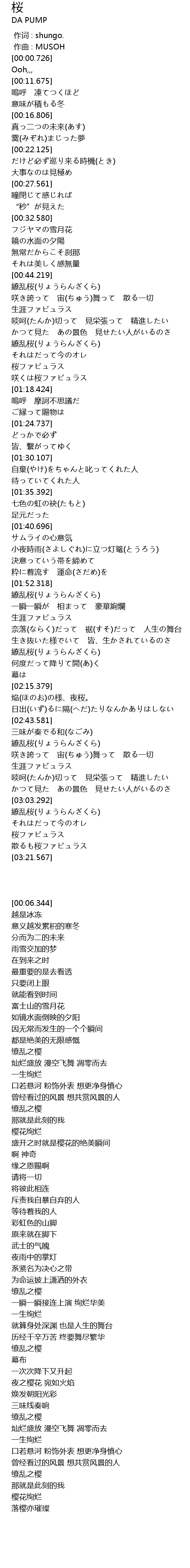 | [03:13.464] | 散るも桜ファビュラス |