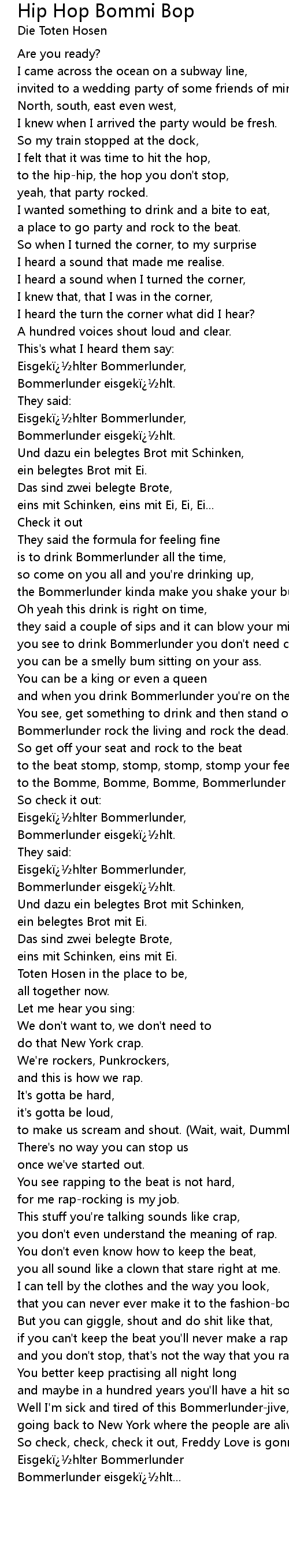 | to the Bomme, Bomme, Bomme, Bommerlunder beat. | |