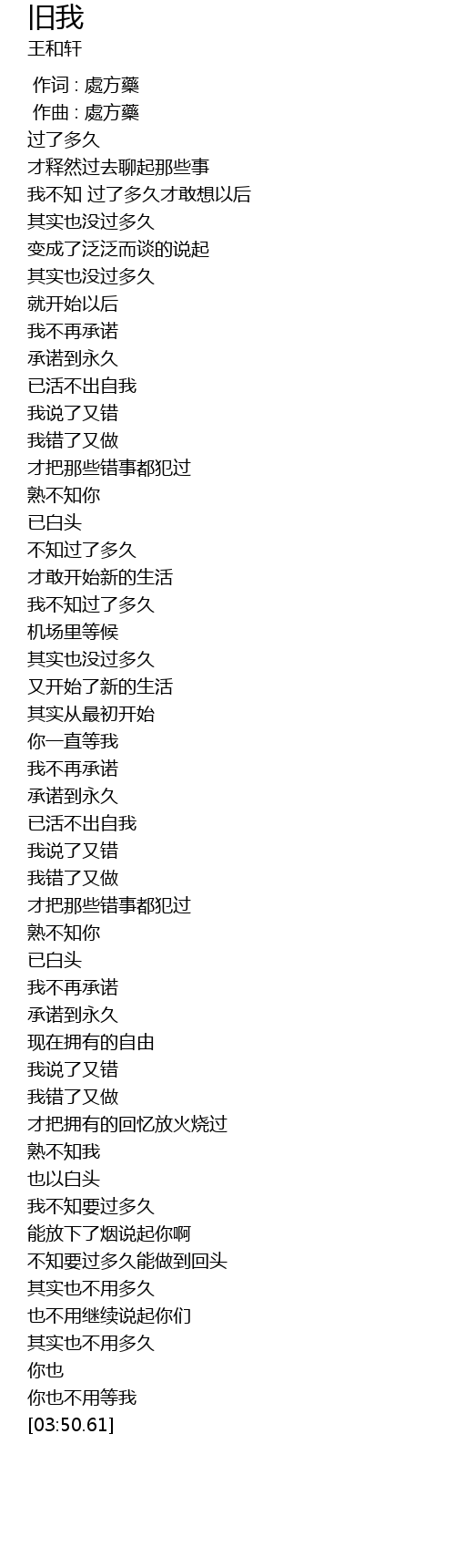 | [03:11.64] | wo bu zhi yao guo duo jiu |