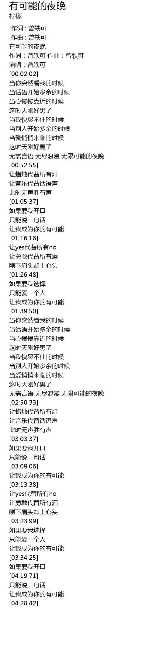 | [00:01.00] | yǒu kě néng de yè wǎn |