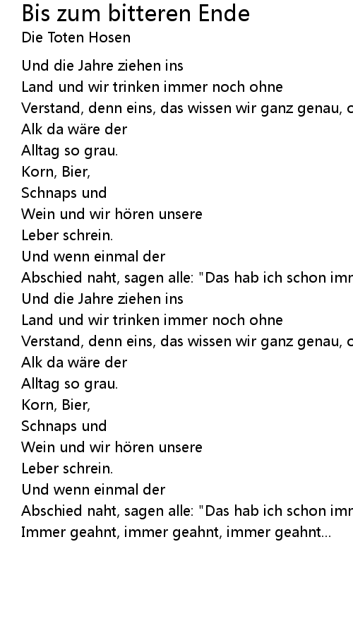 | Abschied naht, sagen alle: " Das hab ich schon immer geahnt.". | |