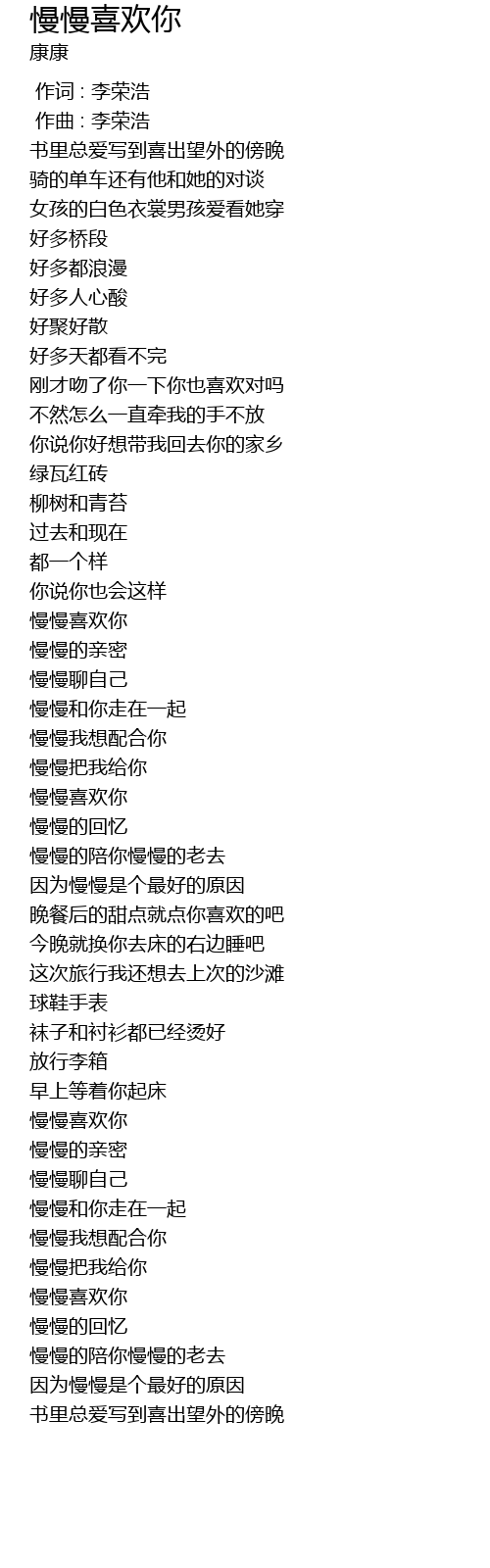 | [01:15.651] | 慢慢喜欢你 |