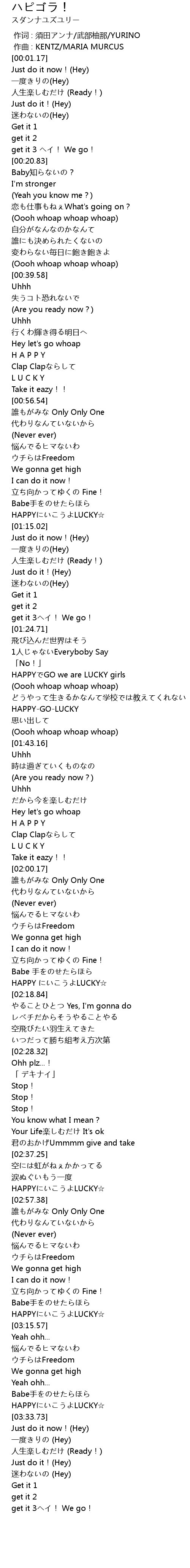 | [01:13.25] | HAPPYにいこうよLUCKY☆ |