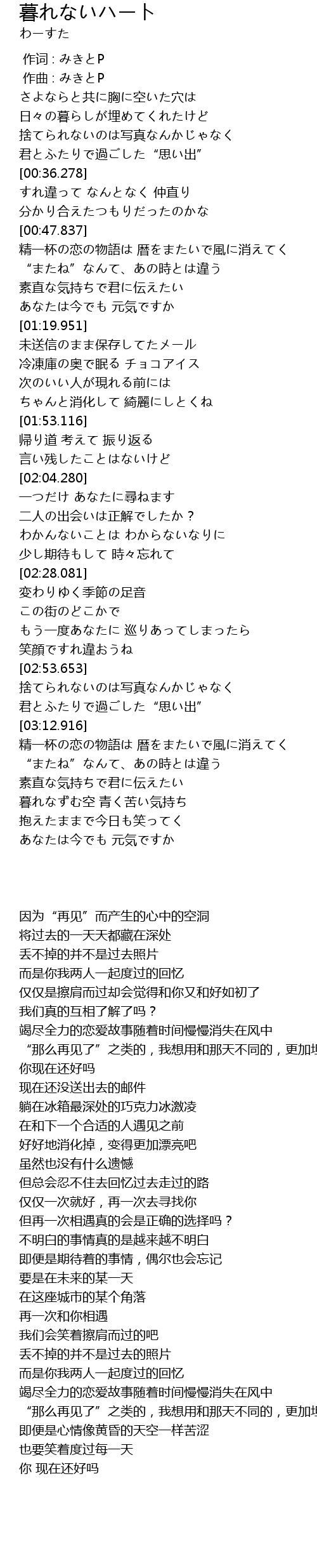 | [00:13.296] | さよならと共に胸に空いた穴は |