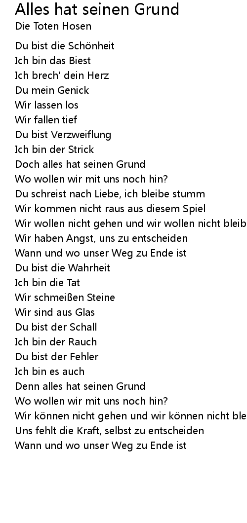 | Song | Alles hat seinen Grund |