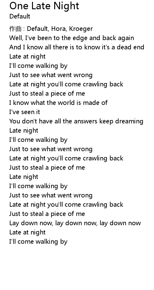 | Song | One Late Night |