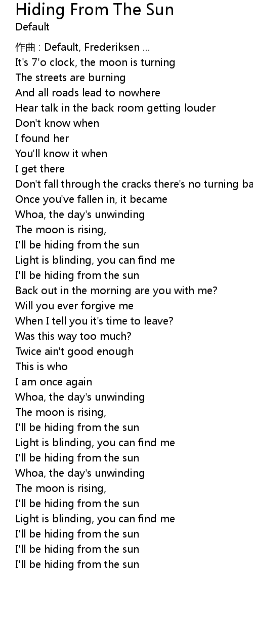 | I'll be hiding from the sun | |