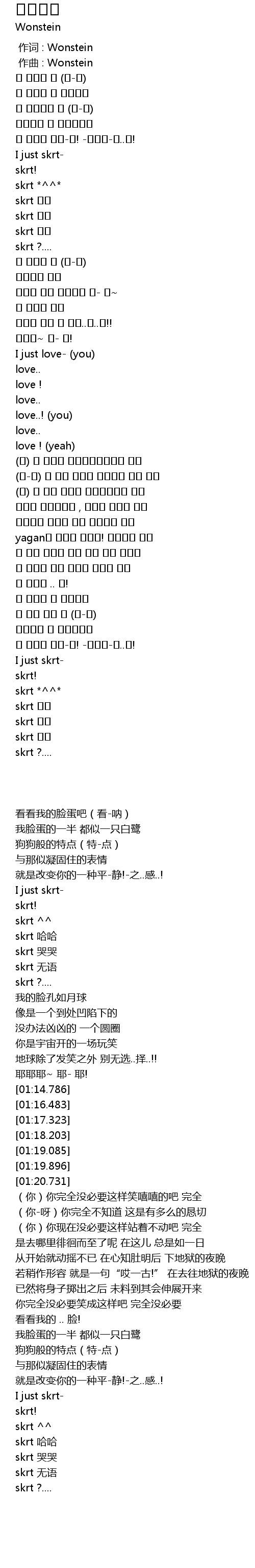 | [01:53.299] | 내 얼굴의 반 백한마리 |