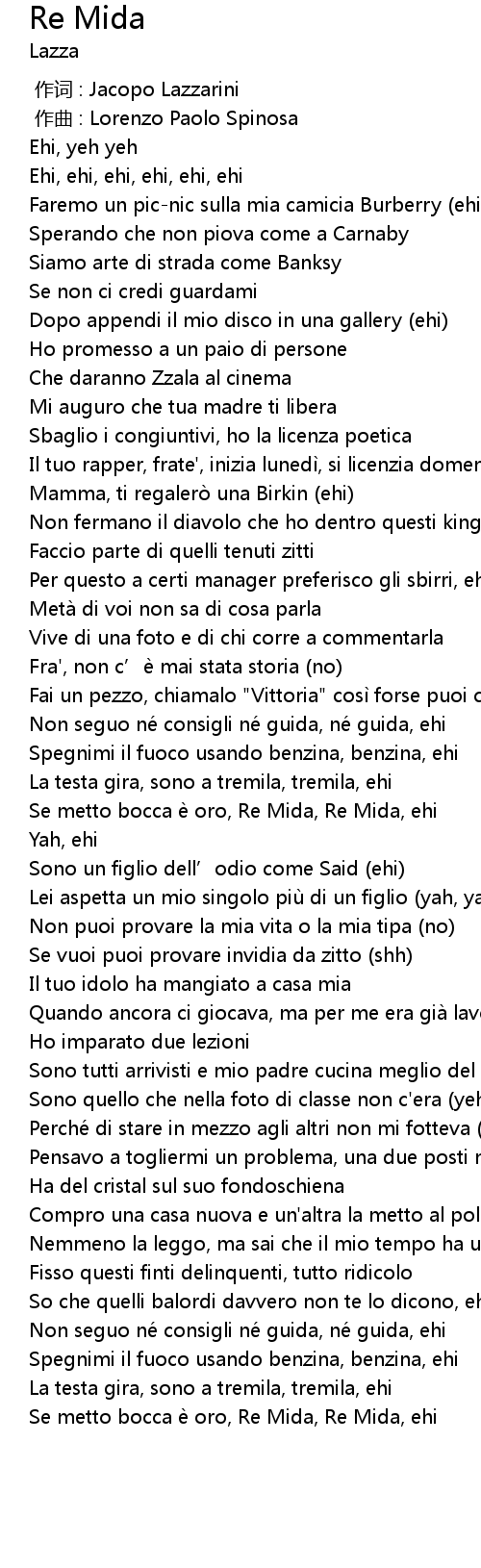 | [02:15.49] | Se metto bocca e oro, Re Mida, Re Mida, ehi |